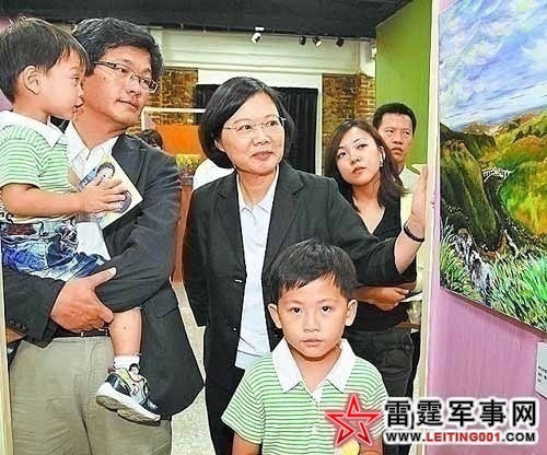 蔡英文昨在辅选会频动怒,随后转换心情欣赏已故画家张淑玫画展,张的丈夫、幼儿一路陪同。图片来源:台湾苹果日报 林启弘 摄
