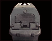 握把和枪管夹角是111°,另外加大尺寸的“冬用”扳机护圈也向下偏转了10°。握把形状也很有特点,握把背面形状设计被称为“骆驼背”,其实是在虎口位置有一内凹形状,而握把前上部有挂靠中指用的凸起,这样吸要用拇指和中指就能握紧握把。握把的断面呈鹅卵形,后端圆前端有棱角,适合整个手掌握持。这样,握把的角度、形状综合起来使斯太尔M系列手枪具有良好的“指向性”,而且由于握把和枪管轴线的距离很接近,射击时枪口跳动较小,后坐力容易控制,射击后也容易立即回复瞄准目标。